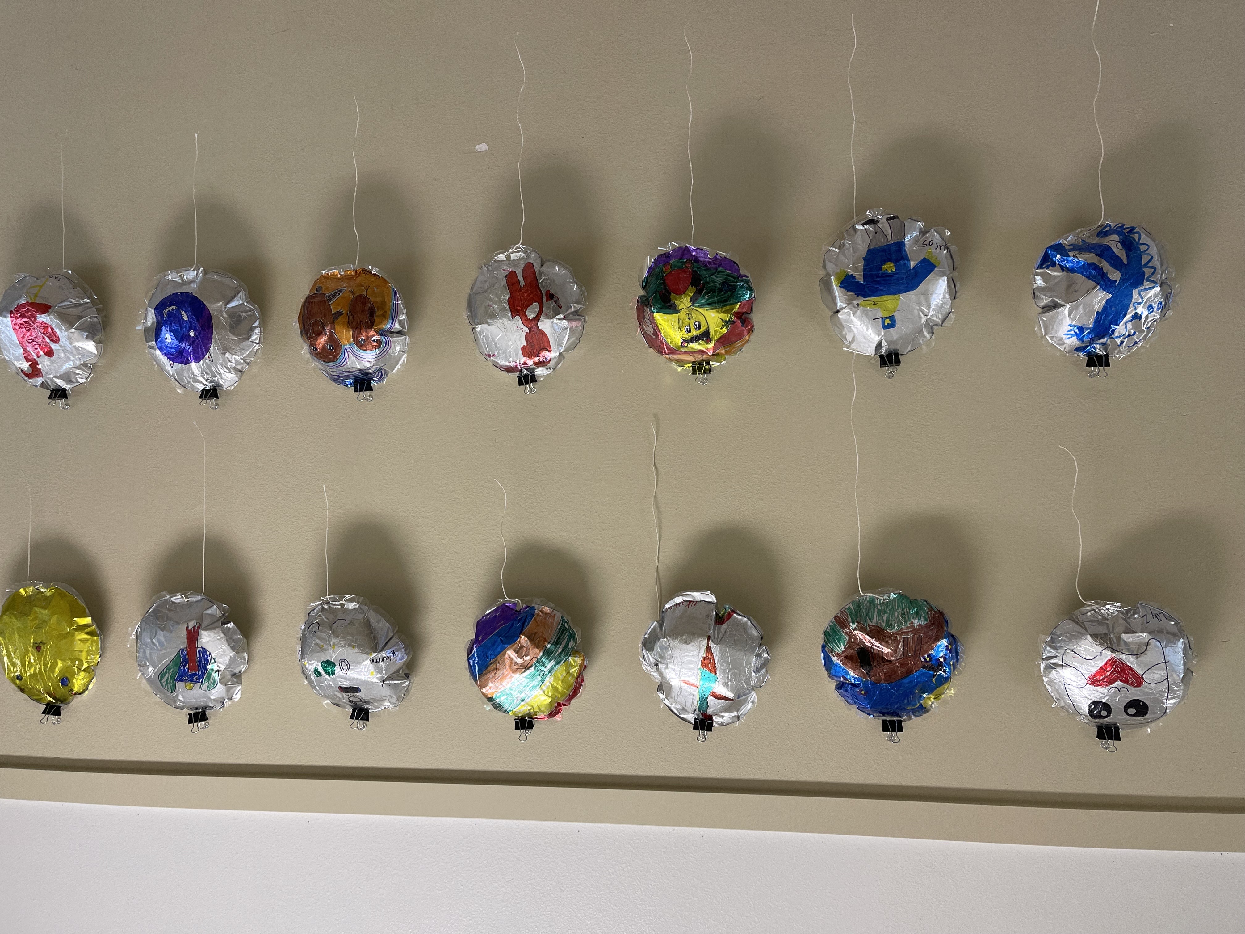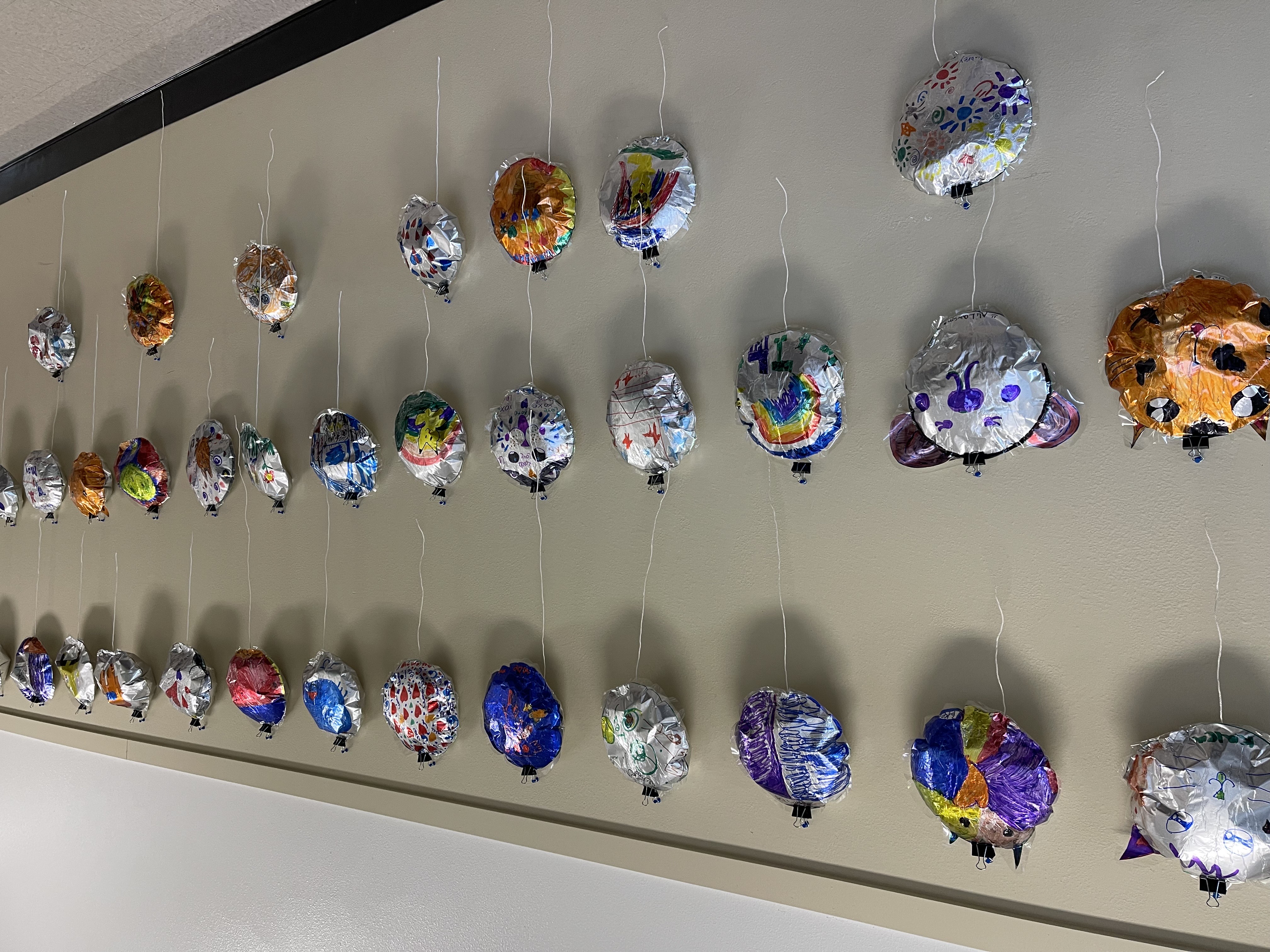 Inspired by the beloved story of puppeteer Tony Sarg and the creation of the iconic parade balloons, students designed and decorated their own miniature “balloons,” now proudly displayed along the second-grade hallway. Each balloon reflects student imagination—bright colors, creative characters, and thoughtful details that make this hallway come alive.